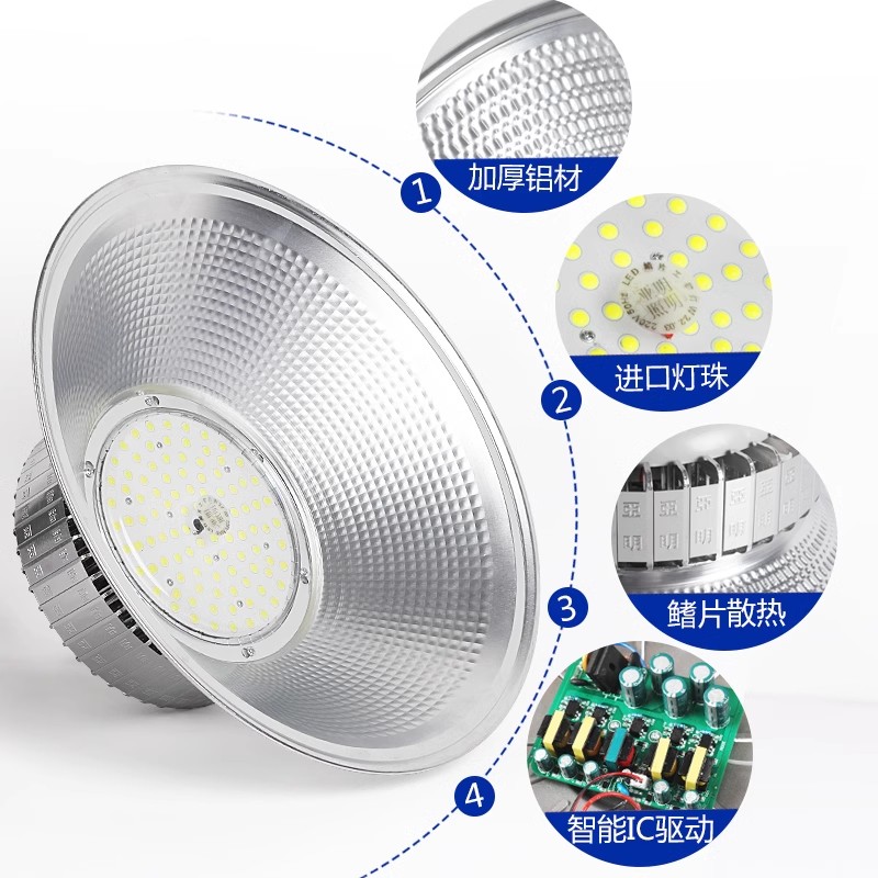LED lampa pro těžbu pin, různé specifikace si mohou vybrat 100/150/200/300 W; Tepelná ploutve, dobrý efekt rozptylu tepla; Velký stínící stíník, široký rozsah ozařování; LED dovážený čip, vysoký jas, dlouhá životnost
